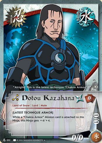 техники технику Катона, то можно её устранить ----------------------------- Сосетцу Казахану - бывший феодальний лорд и отец Коюки. Сосетцу говарил своей дочери, как красиво лето.Из-за того что в Стране снега нет лета только зима Сосетцу создал генератор тепла к которому ключом был шестигранный кристалл. Кристалл находился у Коюки. Когда Дото собрал свою армию и нанял трех шиноби, он устроил государственный переворот, тем самым убил Сосетцу и сжёг дворец Казахану.После того как Сосетцу убили Дото стал феодальним лордом. Повязка шиноби снега- Символ деревни-